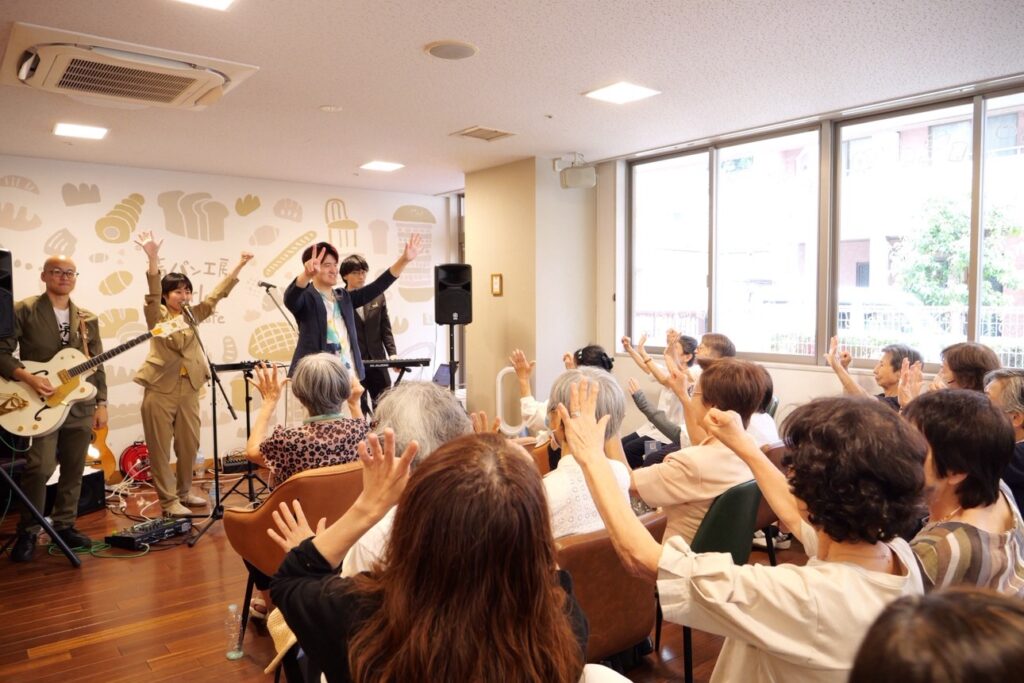 写真は喫茶で行われている演奏会の様子です。楽しい音楽とパフォーマンスで、会場を盛り上げてくださいますよ。