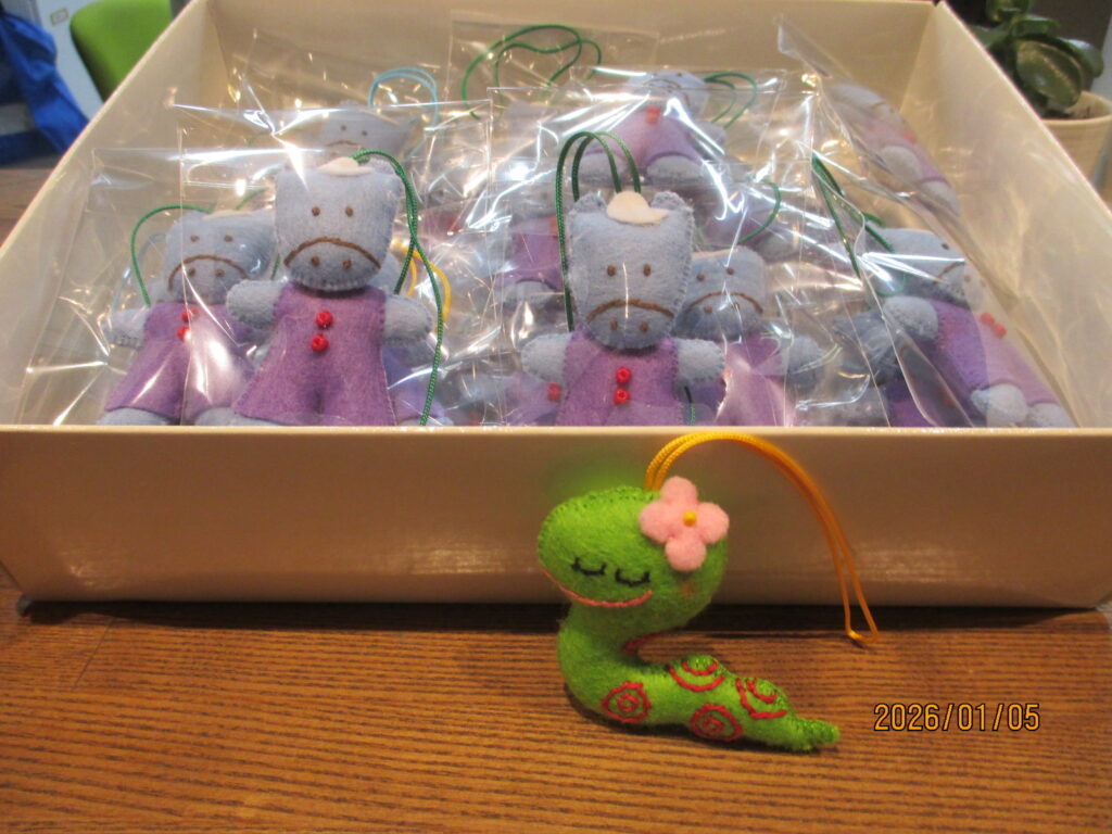 明けましておめでとうございます。本年もどうぞよろしくお願い致します。ほんちょうの郷では近隣に住む住民の方から、毎年とても可愛い手作りの干支のマスコットを頂いています。本年度は何とも愛らしい午のマスコット。昨年の巳からバトンタッチです。